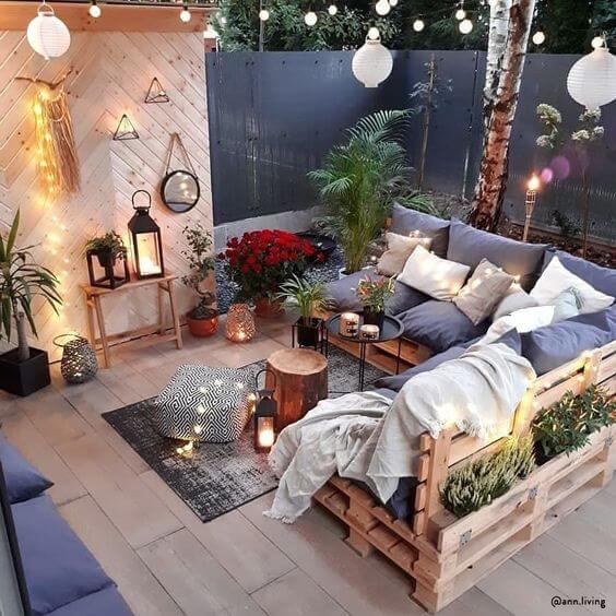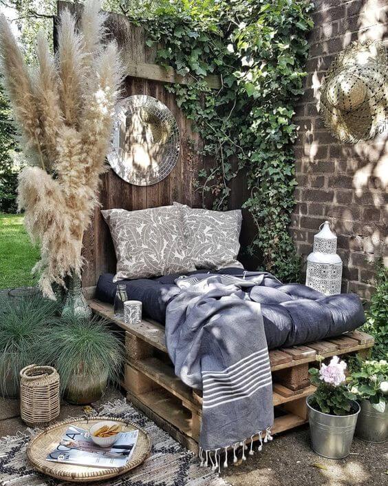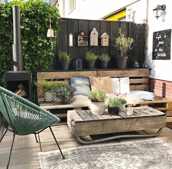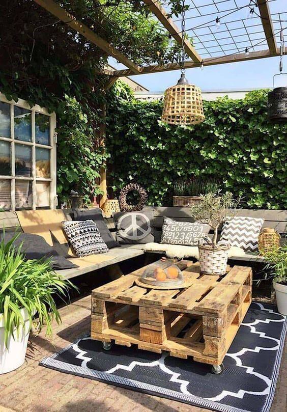 Use wooden pallets to create DIY furniture pieces like pallet sofas, coffee tables, and seating. You can customize the pallets with cushions and pillows for added comfort. Pallet furniture has a rustic and relaxed appeal that complements the outdoor setting.