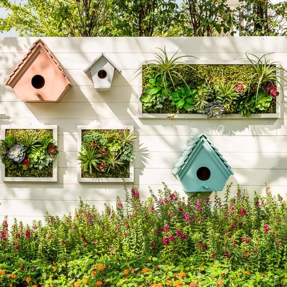 A plain fence can transform into a green wall with mounted planters. Attach wooden boxes, pots, or pocket systems directly to the panels.