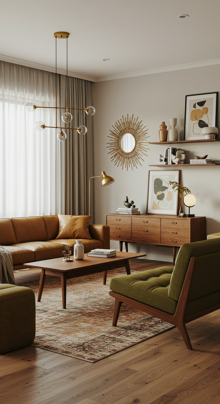 Mid-Century Modern Cozy Home Decor Living Room with Retro Luxe Charm