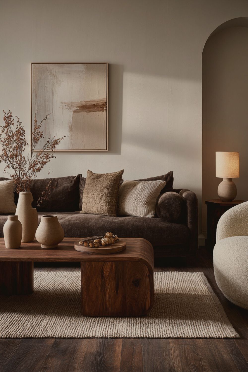 Moody Organic Modern Living Room with Brown Couch | Home Decor | Interior Design