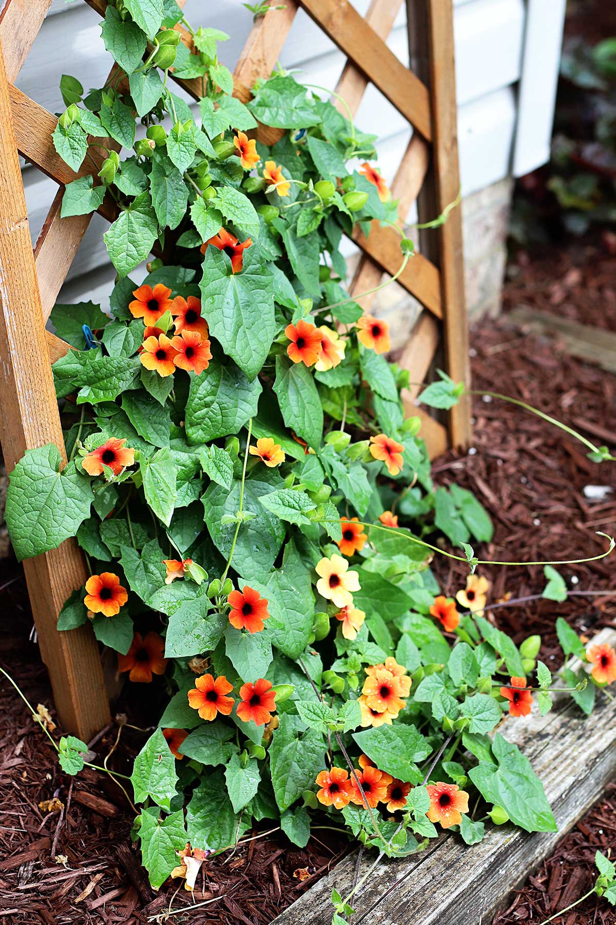 Grow black-eyed Susan vines on a lattice structure, creating a charming and shaded patio space.