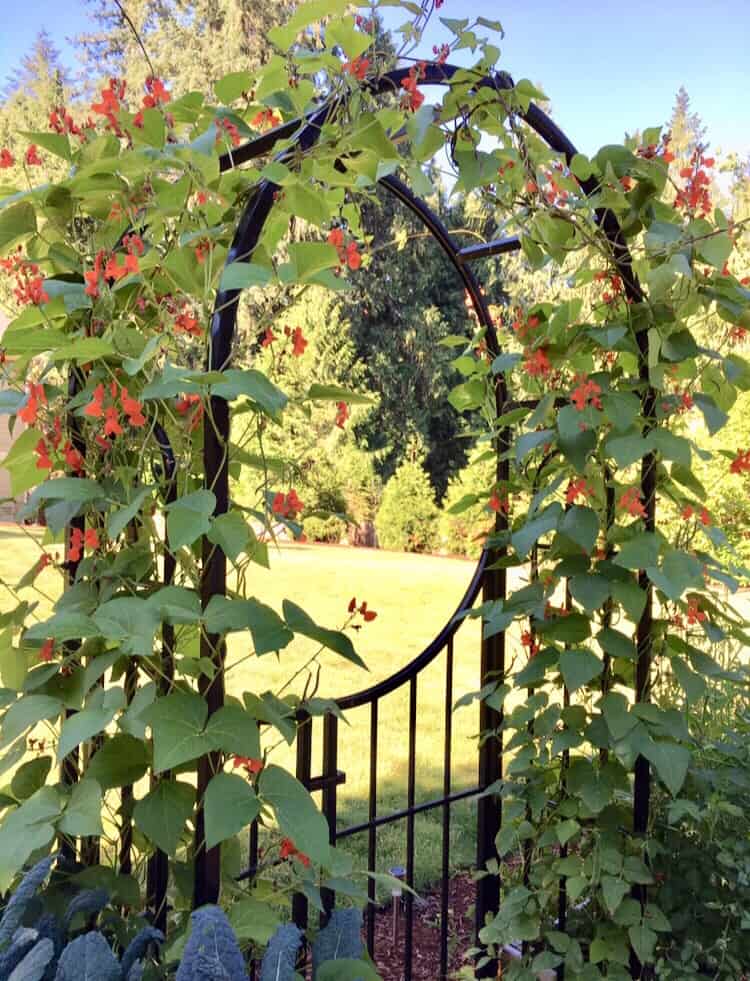 Train scarlet runner bean vines over an arch to create a beautiful and edible shade structure.