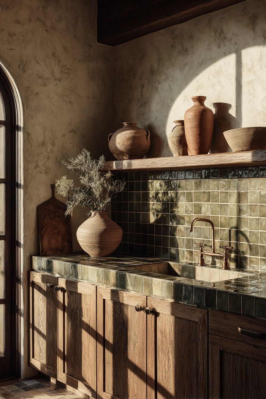 Olive Tile Backsplash for a Mediterranean Style Kitchen Inspiration