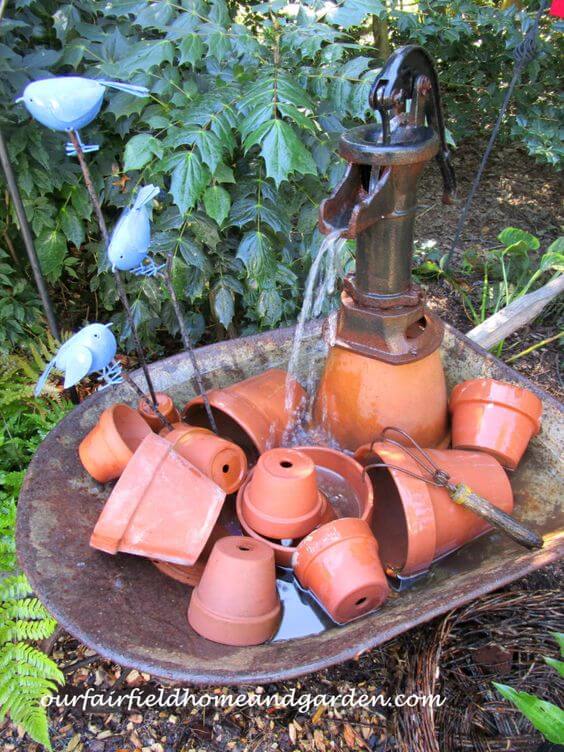 #7 Wheelbarrow And Well For Water Fountain Idea