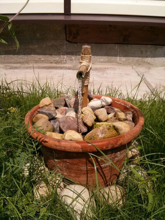 If you want to add a unique element to your backyard, try a one-of-a-kind DIY water feature here! The 25 Outdoor Water Feature Ideas Made From Recycled Materials here will help your garden space become full of freshness and energy.