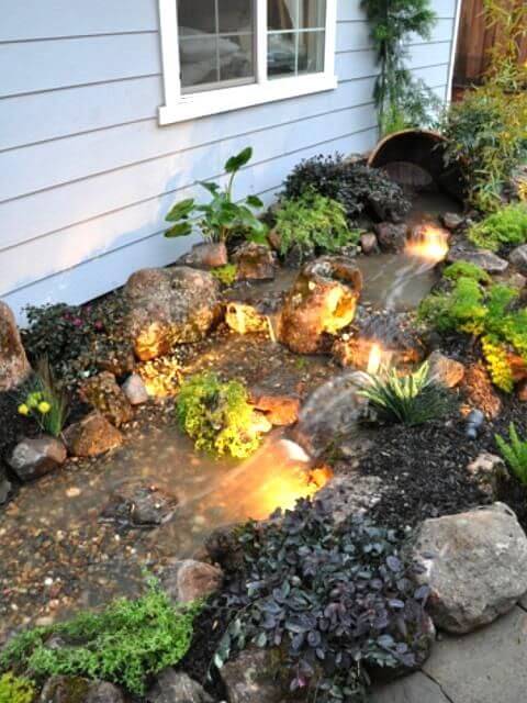Turn your garden into a relaxing retreat with a cascading barrel waterfall. Tilt the barrel slightly and fit a water pump to create continuous flow. Surround the setup with rocks and plants to make it look natural.