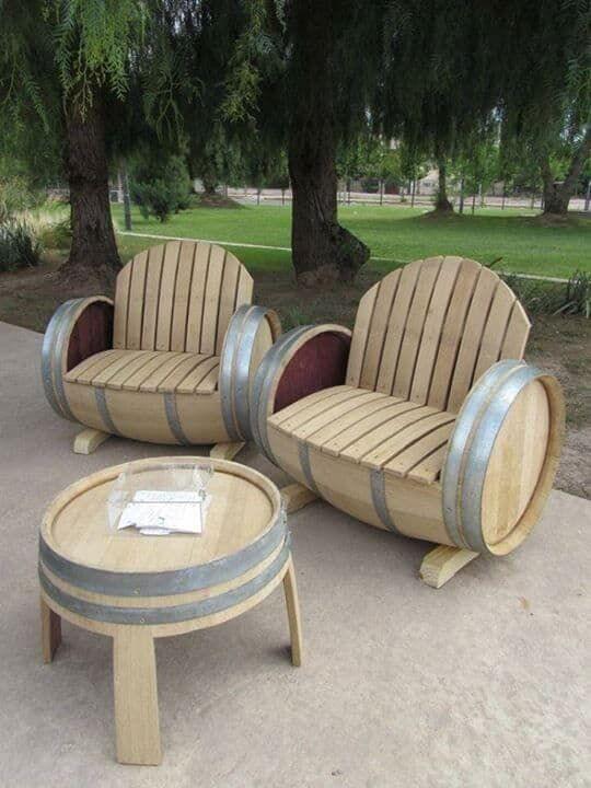 Barrels can be cut into unique chairs that are both sturdy and stylish. Use the curved wood as a natural seat and add cushions for comfort. Sand the edges well to avoid splinters.