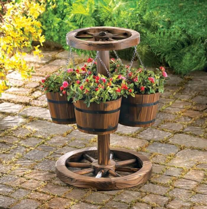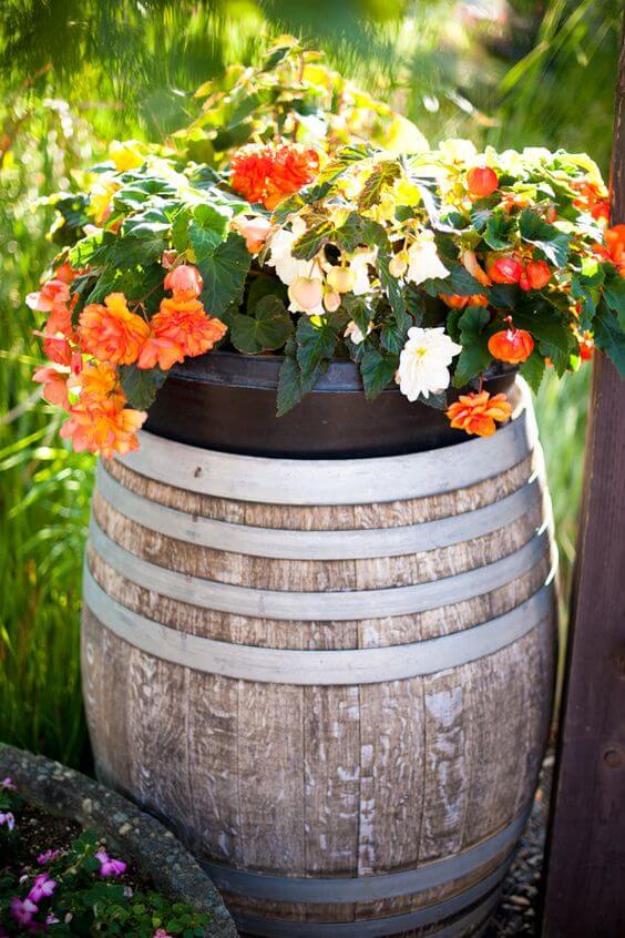 Barrels can even be suspended from a wheel or frame to make a hanging garden. Plant trailing flowers or vines inside for a cascading effect. This adds height and drama to your outdoor space.