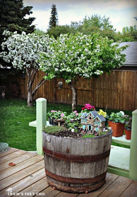 #19 Old Wine Barrel Fairy Garden