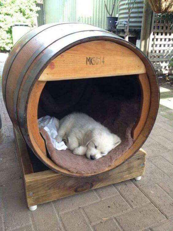 Your pets can enjoy the comfort of a barrel too. Cut an opening into the side and line it with a cushion or blanket. Cats love cozy, enclosed spaces, and this makes a unique pet bed.