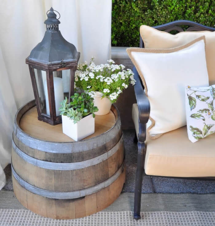 A full wine barrel makes a sturdy base for a dining table in your patio or garden. Just add a round wooden or glass top to complete the look. It’s an easy project that creates a statement piece while keeping things functional.