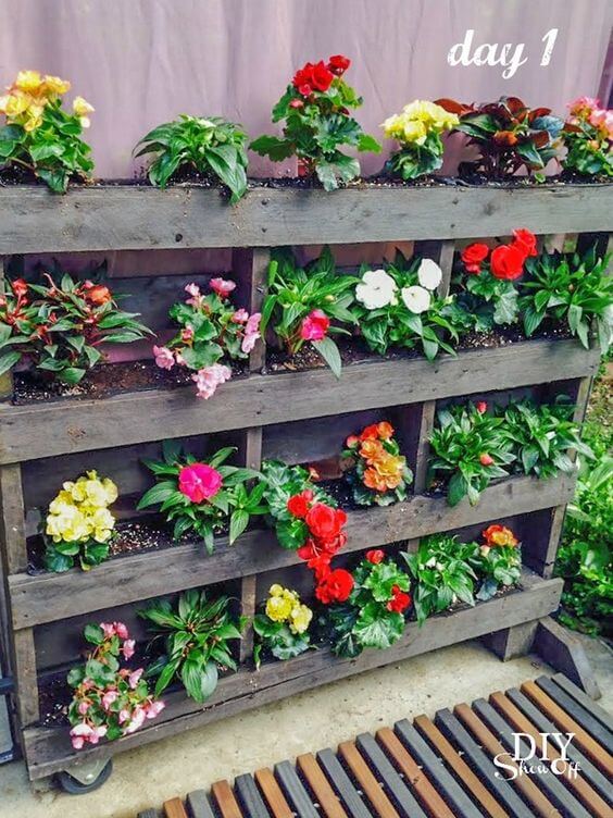 Transform an old wooden pallet into a charming vertical garden that instantly adds color to any space. Each slat becomes a mini garden bed, perfect for a mix of bright flowers or lush greenery.