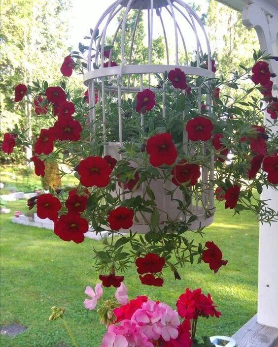 Turn a vintage bird cage into a stunning hanging flower display that instantly adds charm to your porch or garden. Fill the base with soil and plant vibrant blooms like petunias or geraniums to create a cascading effect through the bars.
