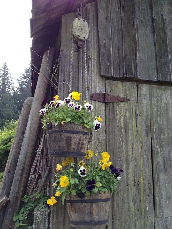 Elevate your garden decor with hanging barrel planters that add charm and dimension to any outdoor space. These rustic barrels create a cascading effect when filled with colorful flowers, making your porch or backyard look lively and inviting.