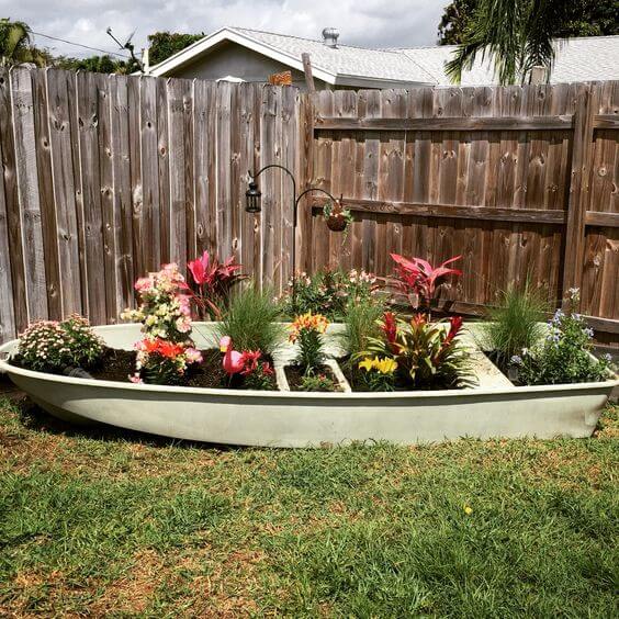 Transform an unused boat into a charming garden centerpiece by filling it with vibrant flowers. Its wide, segmented interior allows you to create multiple mini-garden sections, perfect for mixing colors and textures.