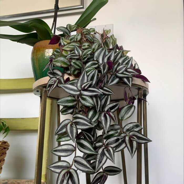 This trailing plant offers purple-tinted leaves with silvery stripes that shimmer in the light. It grows quickly, so you can enjoy full, cascading vines in just a few months.