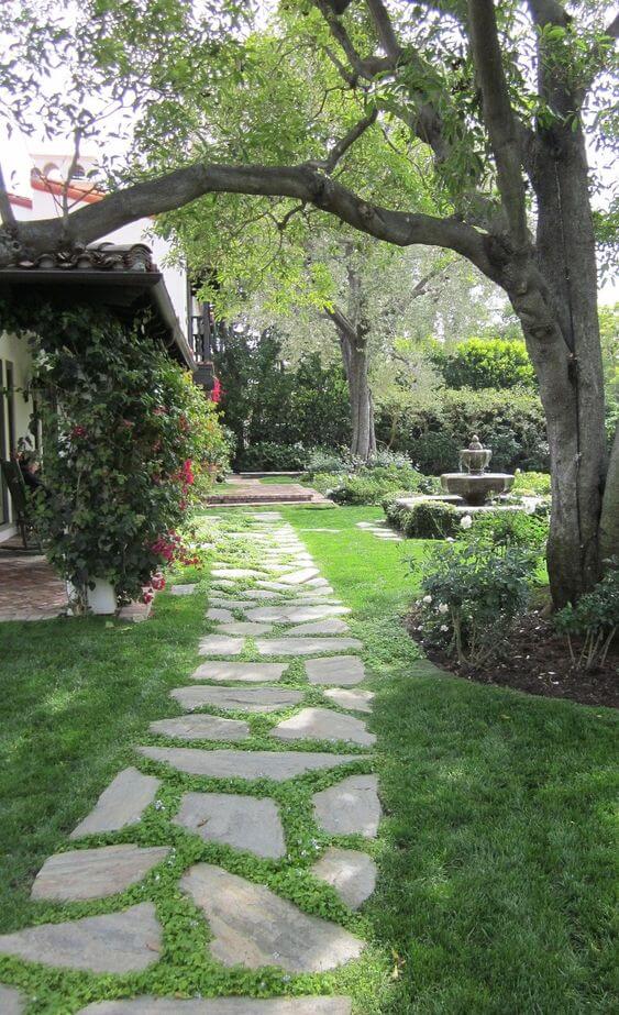 #18 Stone Garden Path With Ground Cover Plant For Green Lawn