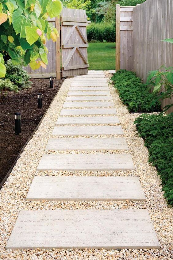 Set your stepping stones in place and fill the gaps with smooth pebbles. It’s low maintenance and holds up well in all seasons.