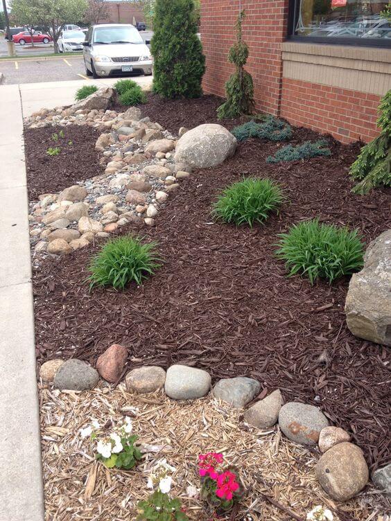 Mix mulch colors for contrast against green plants. Refresh the layer every season to maintain its effect. This is an easy way to improve both style and function in your front yard.