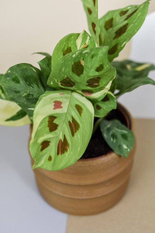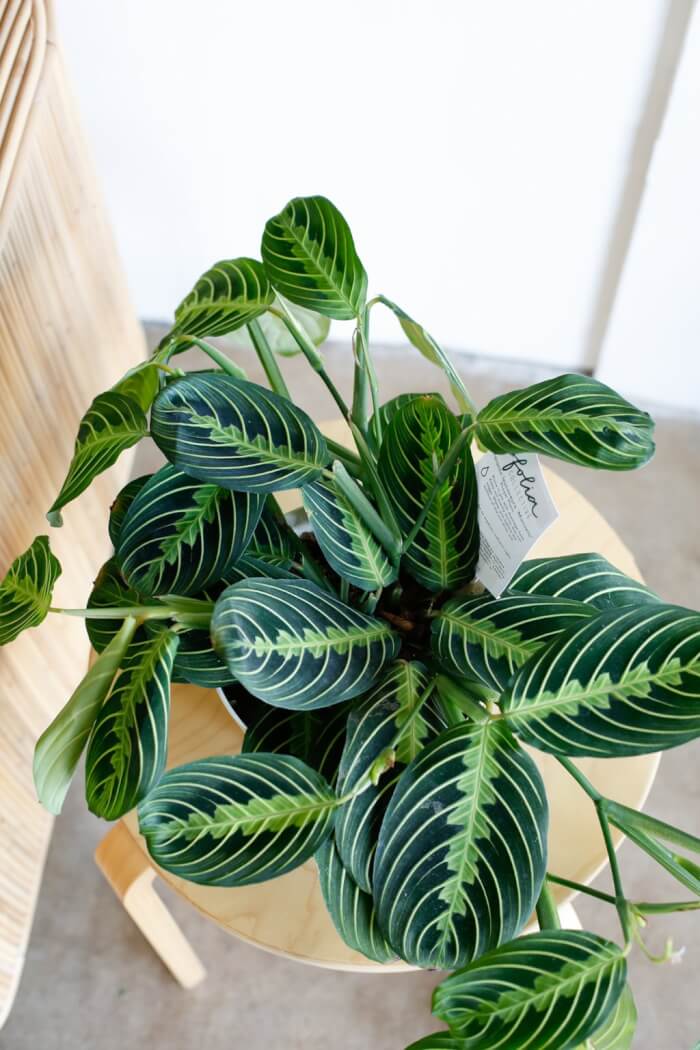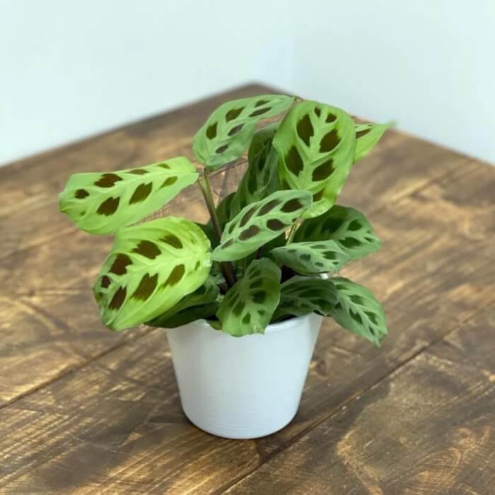 Keep it in bright, indirect light to maintain vibrant markings. Water the soil when the top feels slightly dry, and mist the foliage during dry months to keep it lush. If you’re short on space, this prayer plant is a wonderful choice.