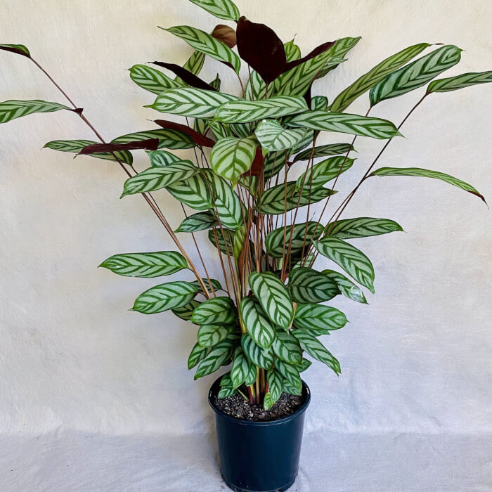 Keep it in indirect light to preserve its gentle tones. Water when the soil feels dry at the top, but avoid soggy roots. This prayer plant variety pairs beautifully with darker-leaved companions for a balanced indoor display.