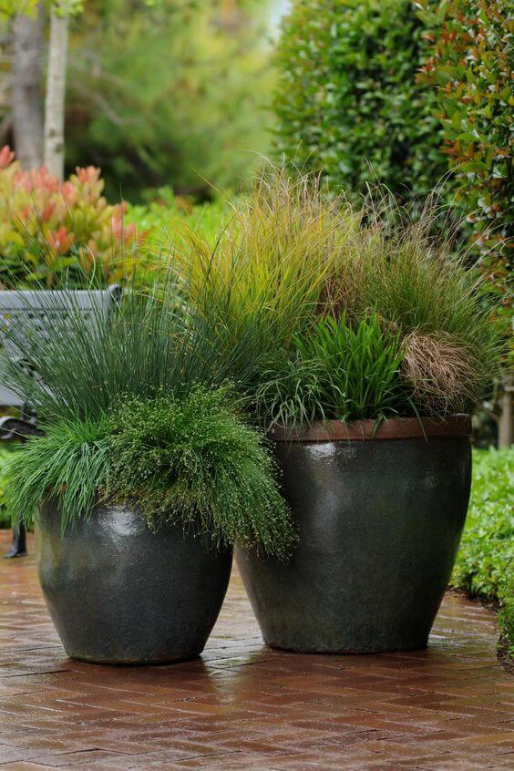 Want to liven up a dull entryway or frame a garden bench? Just grab a pair of large pots, mix in several grass types, and let their shapes do the talking. It’s effortless, elegant, and full of life, especially on rainy days.