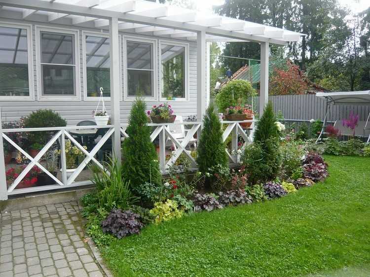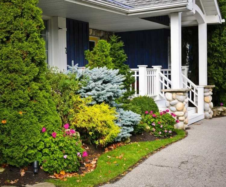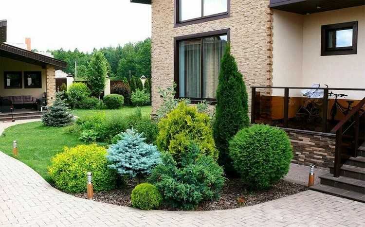 Bien sûr, les conifères viennent en premier. C’est un excellent choix pour la décoration de la cour, étant donné la variété de formes, de types et de durée de vie.