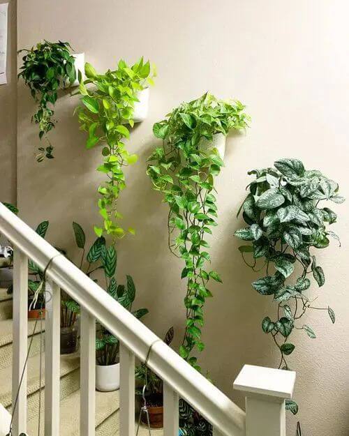 It’s perfect for tight staircases where floor space is limited but vertical space is begging for greenery. Just make sure the area gets enough light to keep your plants thriving.