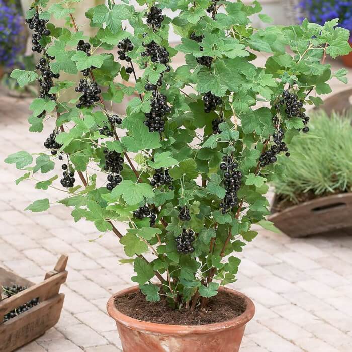 Choose a pot at least 18 inches deep with good drainage, and fill it with rich, loamy soil for steady growth. Place your container in partial sun, as blackcurrants actually prefer cooler conditions and will tolerate some shade.