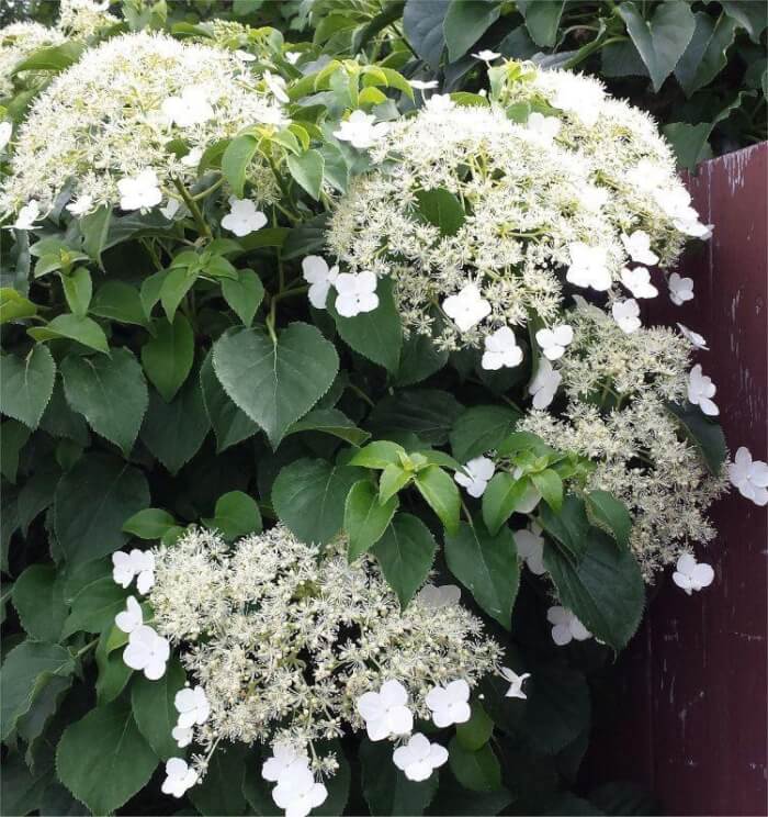 Japanese Hydrangea Vine is admired for its clusters of lacy, white flowers that brighten shady walls and fences. It is an aggressive grower but fairly easy to maintain. Plant it in partial shade to mimic its woodland origins.