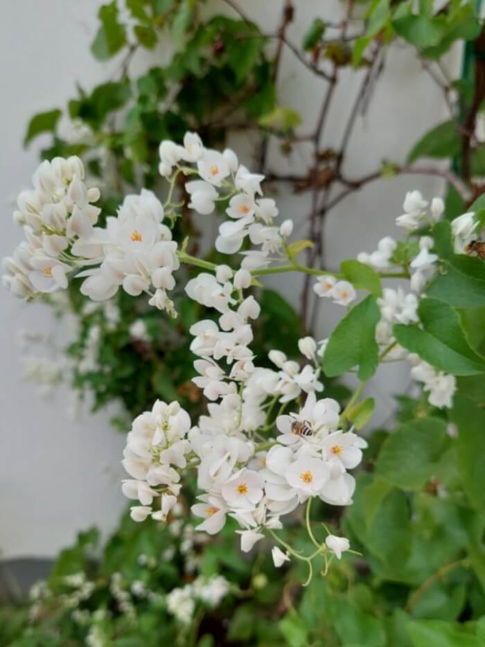 White Coral Vine is known for its delicate chains of tiny white blossoms that appear almost year-round. The plant loves full sunlight and grows well in acidic to alkaline soil. Keep the soil moderately moist, especially during dry spells.