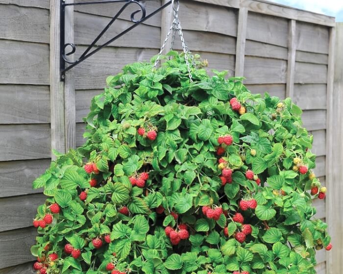 Raspberries can be grown in larger hanging baskets, ideally 12 inches or more in diameter. Compact, thornless varieties are best suited for small spaces. Place your basket in a sheltered spot away from strong winds to protect the canes.