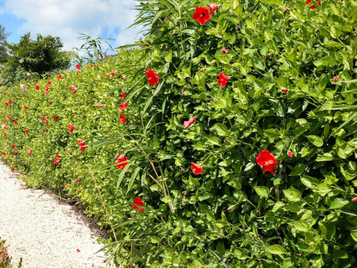 Trim lightly after flowering to encourage new shoots. A hibiscus hedge creates a tropical, vibrant boundary for your garden.