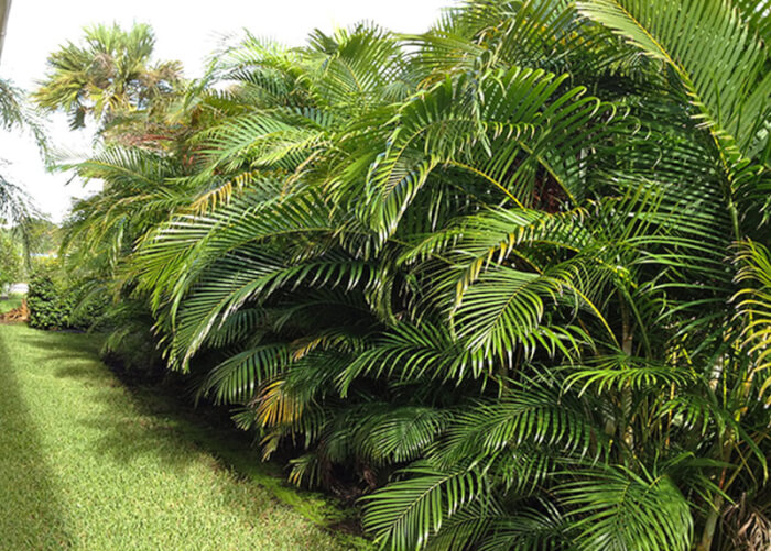 After flowering, it produces small yellow-orange fruits that eventually turn black. Keep the soil consistently moist but not soggy. An Areca Palm hedge creates privacy while adding an elegant, resort-like atmosphere to your garden.
