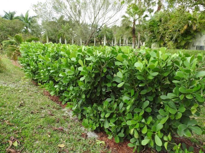 Clusia, also called the autograph tree, is a hardy evergreen shrub perfect for thick hedges. It grows up to 8 feet tall in zones 11 and 12. This plant produces small pink and red flowers throughout the year, adding subtle beauty to its dense foliage.