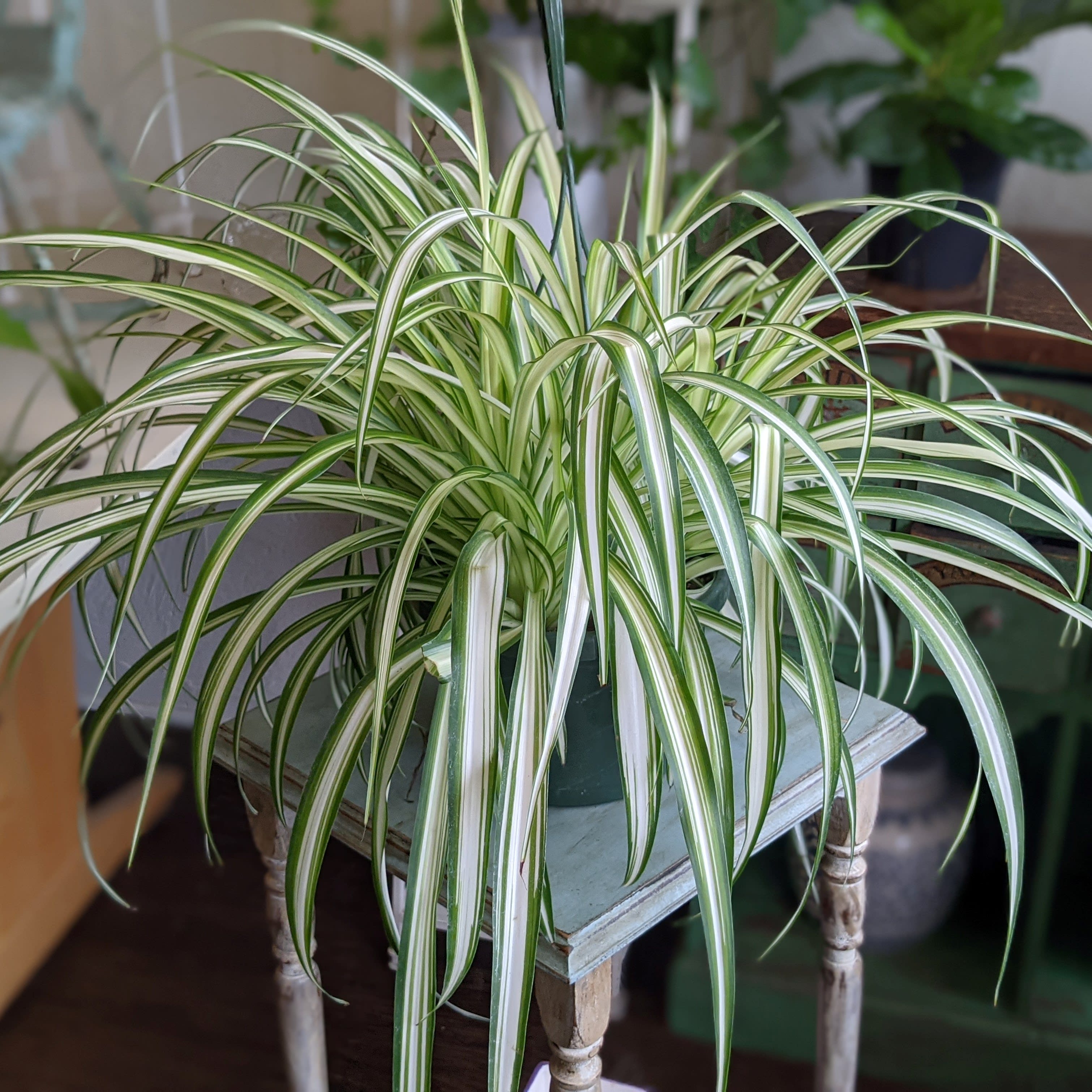 Spider Plants are cheerful and easy to care for, even when light is low. Their long, arching leaves give a bright look to darker rooms, and they’re great for purifying the air.