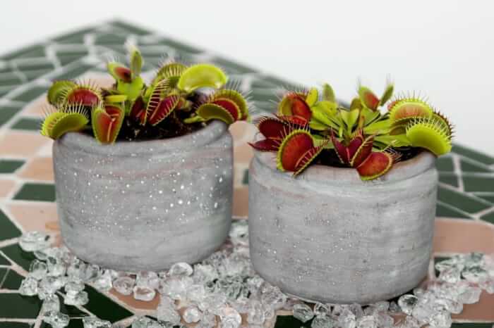 Features: Because they are carnivorous plants, Venus Flytraps get their nutrition from insects rather than from soil or fertilizer. They have developed traps with hair-like features that can close and squeeze their prey.