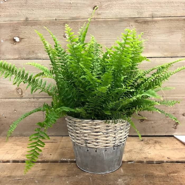 Features: This fern looks great on hanging planters because of its long, sword-shaped green fronds, which become gently arched as they age. If let dry out, the foliage’s countless tiny leaflets fall off and are replaced by wiry stalks.