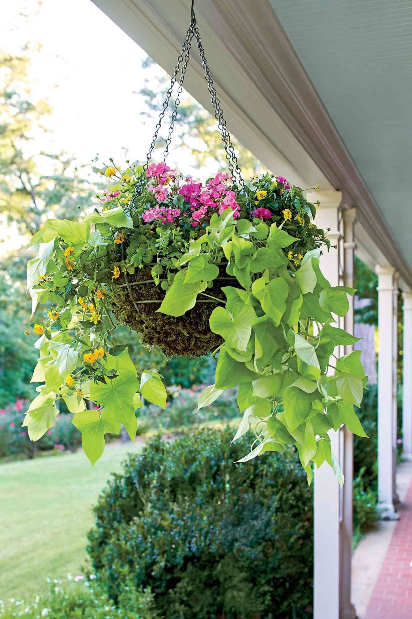 Sweet Potato Vine is a classic fast-growing spiller that grows well in zones 9-11. It looks so great on the patio with the long tendrils plunging over the rims and down the sides of the pot.