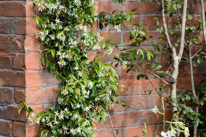 Star Jasmine is a popular fragrant flowering plant and the best candidate for zones 8-10. It grows beautifully up on the trellis vertically with stunning flowers during late spring and early summer.
