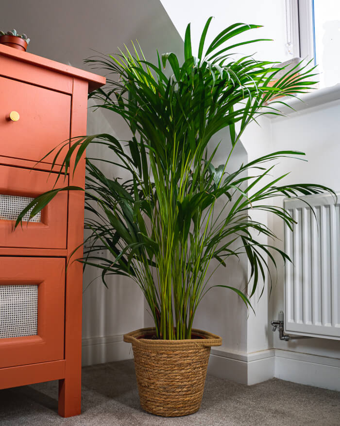 Reduce watering during cooler months when growth slows. Mist the leaves to maintain humidity and prevent browning tips. This palm makes a natural room divider and brings a relaxed island feel indoors.