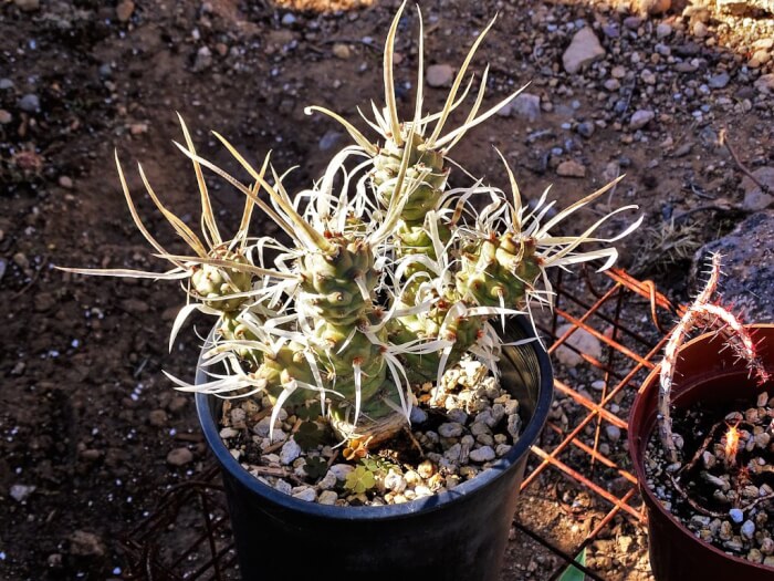 Water lightly and only when the soil is dry. Because of its rarity, it’s a prized find for collectors. Its delicate blooms contrast beautifully with its rugged body.