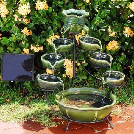 This cascading ceramic fountain adds a refreshing movement of water to your backyard. Its green ceramic bowls create a beautiful tiered effect as the water flows gently from the top down into the basin.