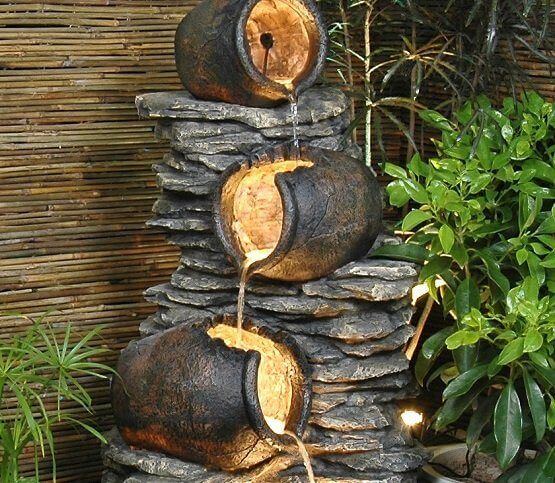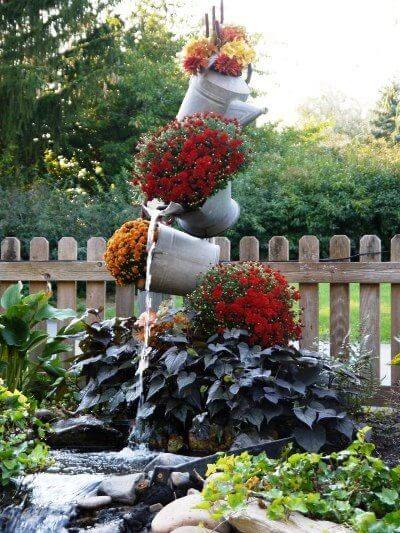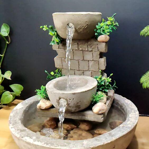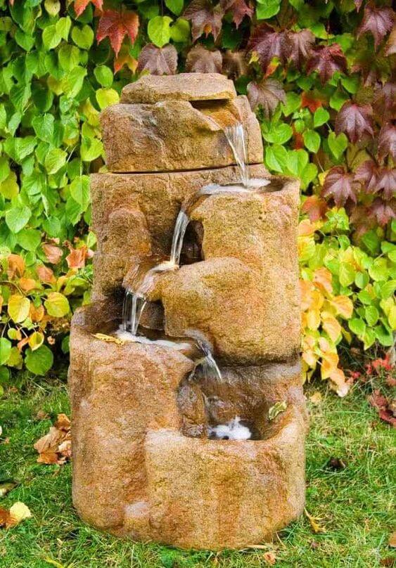 To create something like this, stack the cans securely in a pyramid-like formation, making sure the water flows smoothly from one to the next. Surround the base with rocks and plants to give the fountain a natural, earthy feel.