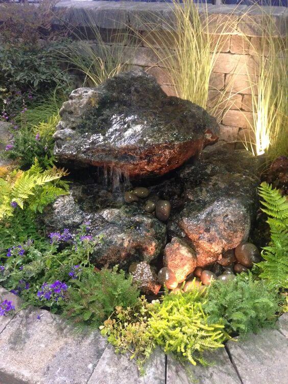 Small, discreet lighting at the bottom will illuminate the fountain at night, creating a magical effect. This DIY project brings the soothing sounds of nature to your garden and creates a peaceful, relaxing environment.