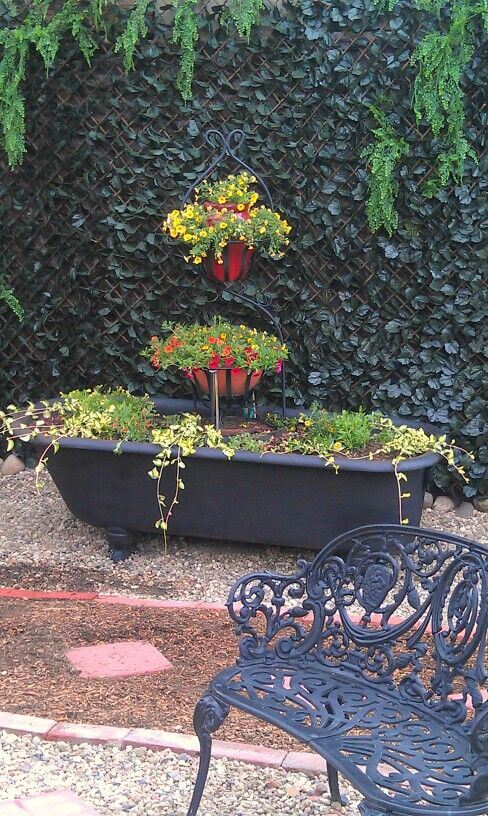 Cast iron tubs have timeless charm and strength, making them perfect for outdoor planters. Drill drainage holes before filling with soil. Grow colorful flowers, tall grasses, or even dwarf shrubs.