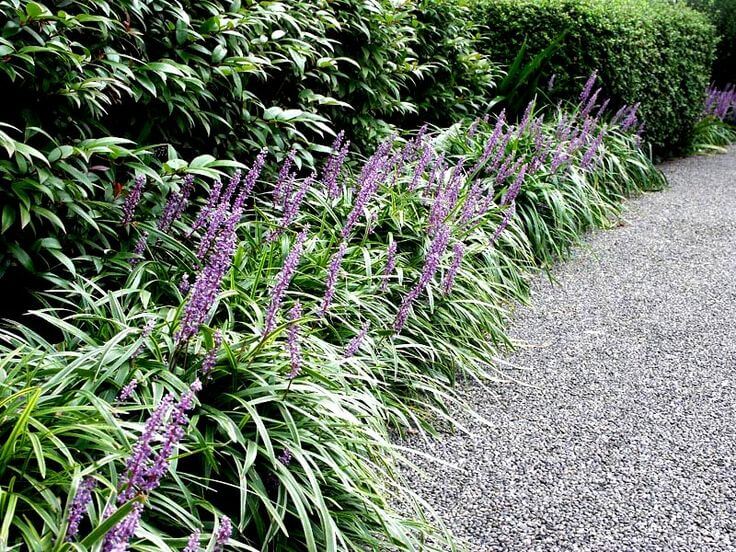 Liriope is a popular choice as a border plant, thanks to its low and mounding habit. It shows off spikes of small, purple, or white flowers in late summer that add great hues to any walkway,