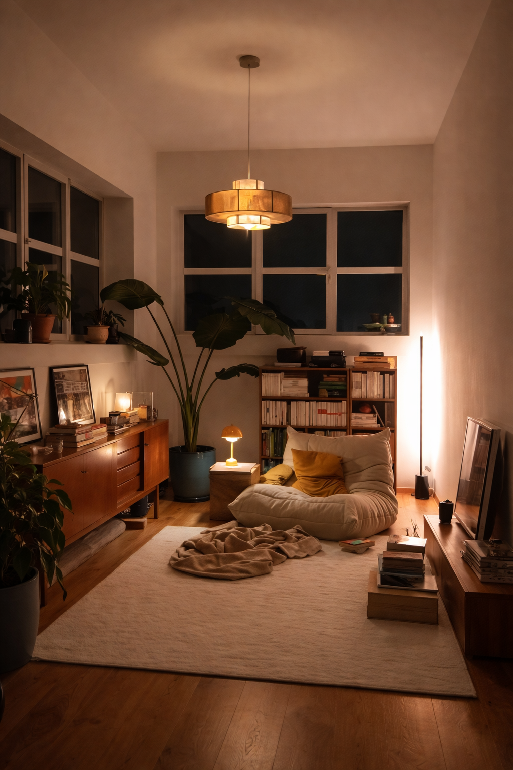 Warm Minimalist Living Room at Night ✨ Cozy Modern Interior Inspiration